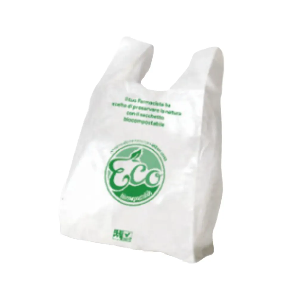 Buste Shoppers biodegradabili e Compostabili con manico a bretella, realizzate nel rispetto della normativa Uni En 13432